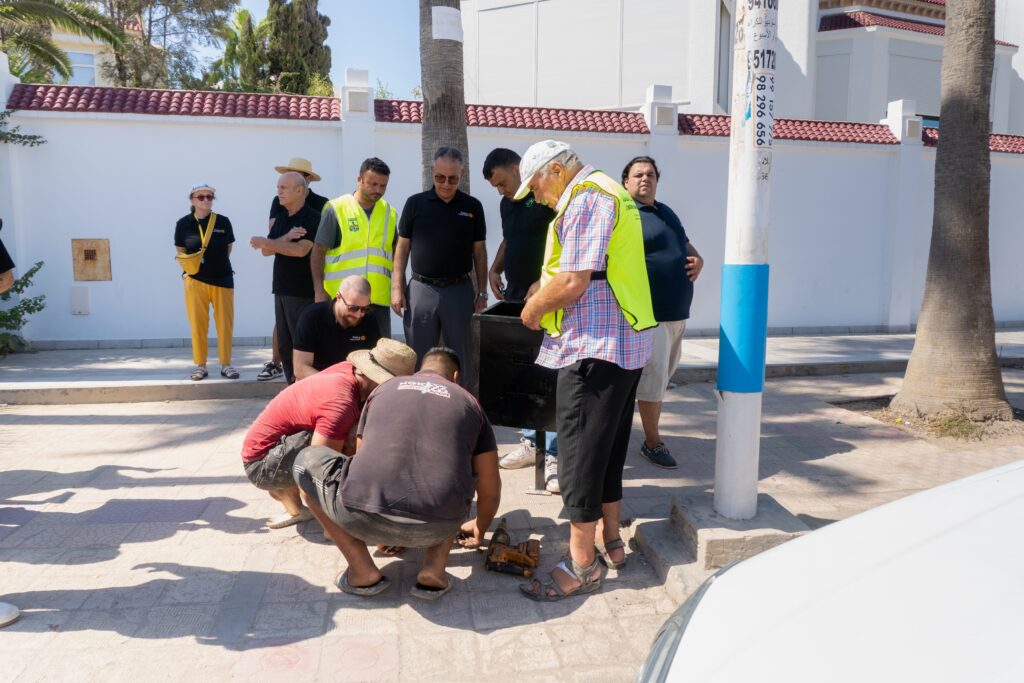 Cette action est menée en collaboration étroite avec la Municipalité de Monastir, que nous remercions pour sa confiance et son accompagnement. Les équipements posés répondent aux normes et exigences municipales, garantissant un ramassage plus facile et sans risque pour les équipes dédiées. Ces poubelles ont été positionnées sur des points à forte fréquentation (axes piétons, zones commerçantes, lieux de passage), à l’issue d’un repérage de terrain réalisé conjointement avec les services techniques municipaux.